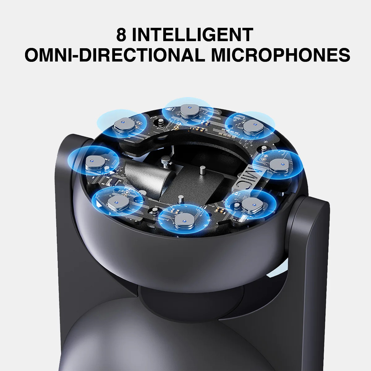 Mencakup semua orang: kamera HD 1080P panorama 360°, 8 mikrofon, dan speaker Hi-Fi 90 dB.