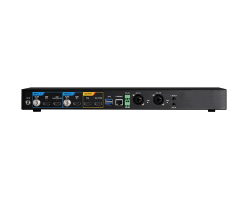 Media Procesor | LumensLive control is incorporated into the device. Connect an HDMI screen to the LC100 to access the intuitive GUI. Sessions can be produced live or scheduled in advance. Build layout scenes that incorporate a variety of visual elements including split screen video, picture-in-picture, title/logo overlays, and background images. Activate and change layouts with the click of a mouse. The LC100 records the mixed program-out video and captures two video inputs with independent audio. This simplifies media archiving and post-production. The Lumens deployment software enables control, management, and administration of multiple LC100 units on the network. Administrators can remotely monitor device status, saving time and reducing costs. Need a break time during the streaming session? Hit the coffee mark to display the break time page. At the same time, set a chapter mark to instantly jump to a particular scene during playback.