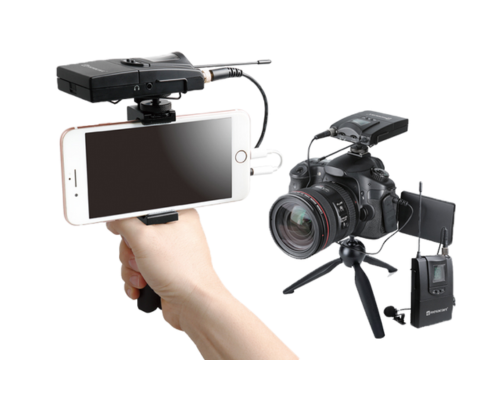 AUDIO | RELACARTCR1 Is a highly cost-effective UHF wireless microphone system, compatible with smart phones (3.5mm interface), digital/SLR cameras, portable cameras, recorders, tablets and other equipment to help pick up high-fidelity audio. It is suitable for interviews, microfilm recording or commercial demonstrations and other applications. The transmitter supports microphone input interface, and the receiver has earphone monitoring function. The effective working distance is about 80 meters in the open space. Both transmitter and receiver have the function of key lock to prevent user from misoperation.