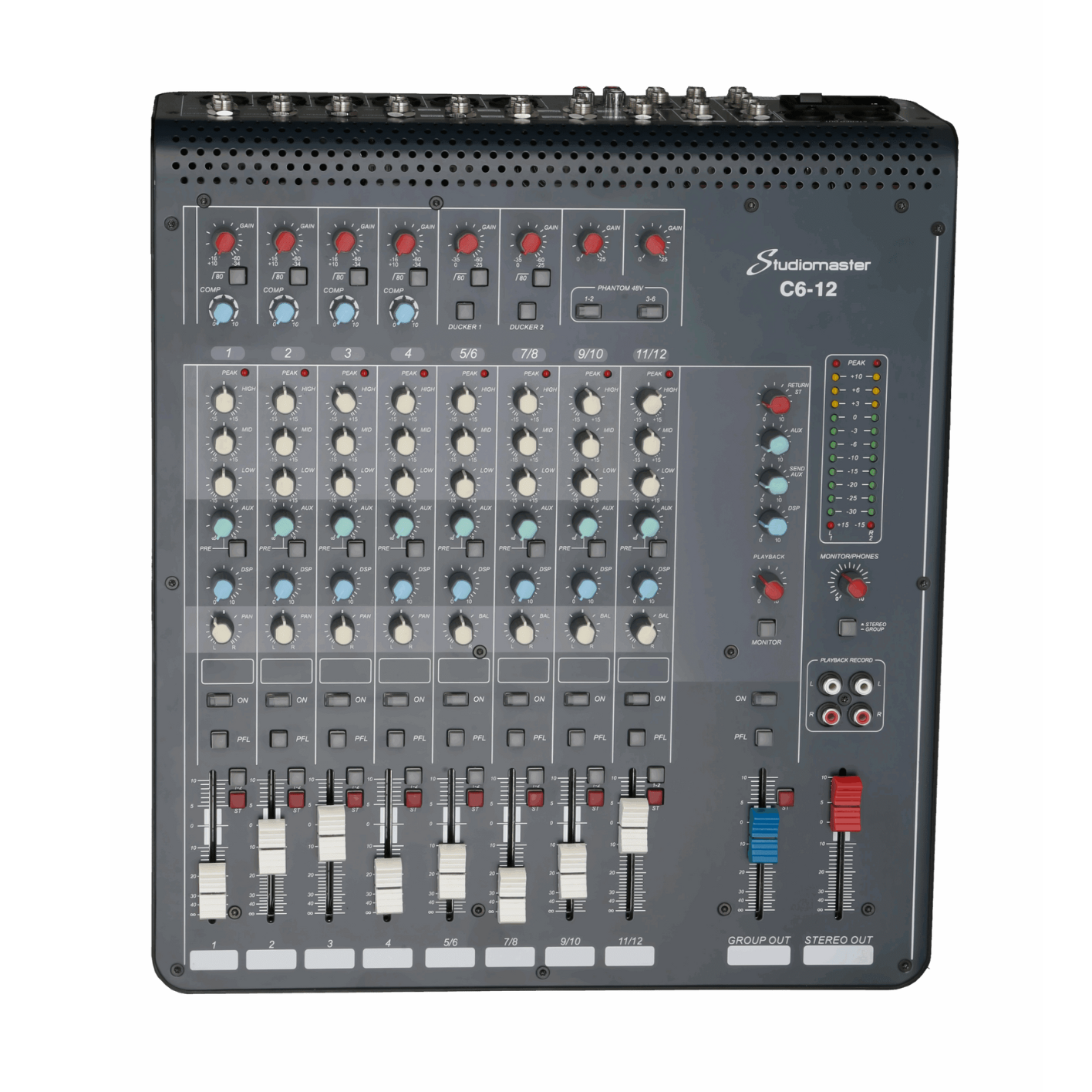 12 channel (6 mic, 4 stereo)